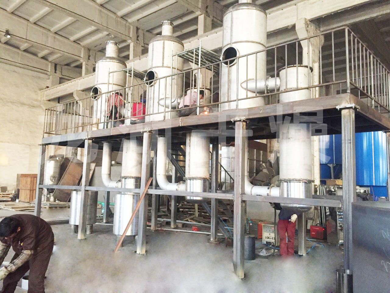 張家港某公司金屬清洗廢水使用現(xiàn)場,蒸發(fā)量每小時(shí)200kg,雙效蒸發(fā)器,配備電加熱蒸汽發(fā)生器